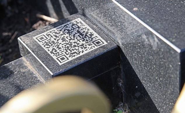在墓碑底部有一個二維碼,掃描此二維碼,則可以進入一個紀念死者的網頁,內有其生平介紹及一些生前照片。