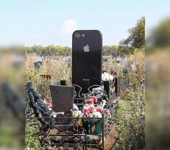 夏米耶娃在2016年不幸遭遇車禍,隨後離世。悲傷欲絕的父親知道女兒生前特別喜歡蘋果手機,於是就製作這樣一個墓碑,當作最後的禮物。