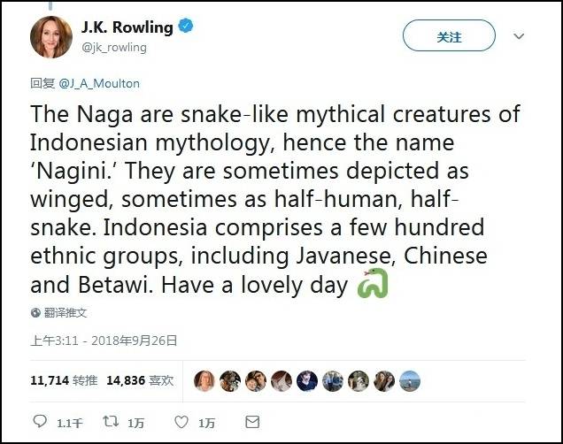 也有人稱:羅琳作為作者有權將心中所想寫到故事裏。對此羅琳回應:“多謝!”