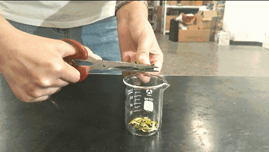 將綠色的葉片剪成窄條狀
