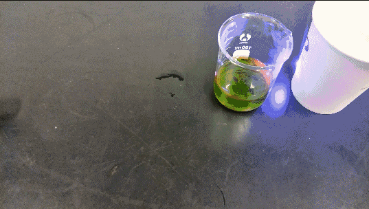 照射燒杯裏的綠色液體