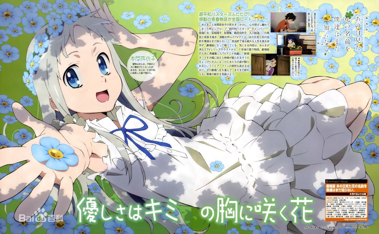 第一次看《未聞花名》並沒有看下去,總覺得有種情感沒到然後強行煽情的感覺,直到後來再看。開始是因為導演長井龍雪來看的,畢竟是《龍與虎》的原班人馬製作。只是在處理這部作品的時候,確實存在一些問題,這種片子裏面有很多人物內心戲,應該用較多的插入鏡頭,而不是讓人物拼命在鏡頭前面演出,這樣很容易讓人有“角色哭了而觀眾沒哭”的尷尬,但是在看完這部動漫後,儘管仍然有感覺在分鏡上的瑕疵,卻不得不承認這是一個極其細膩,讓人感動的故事。