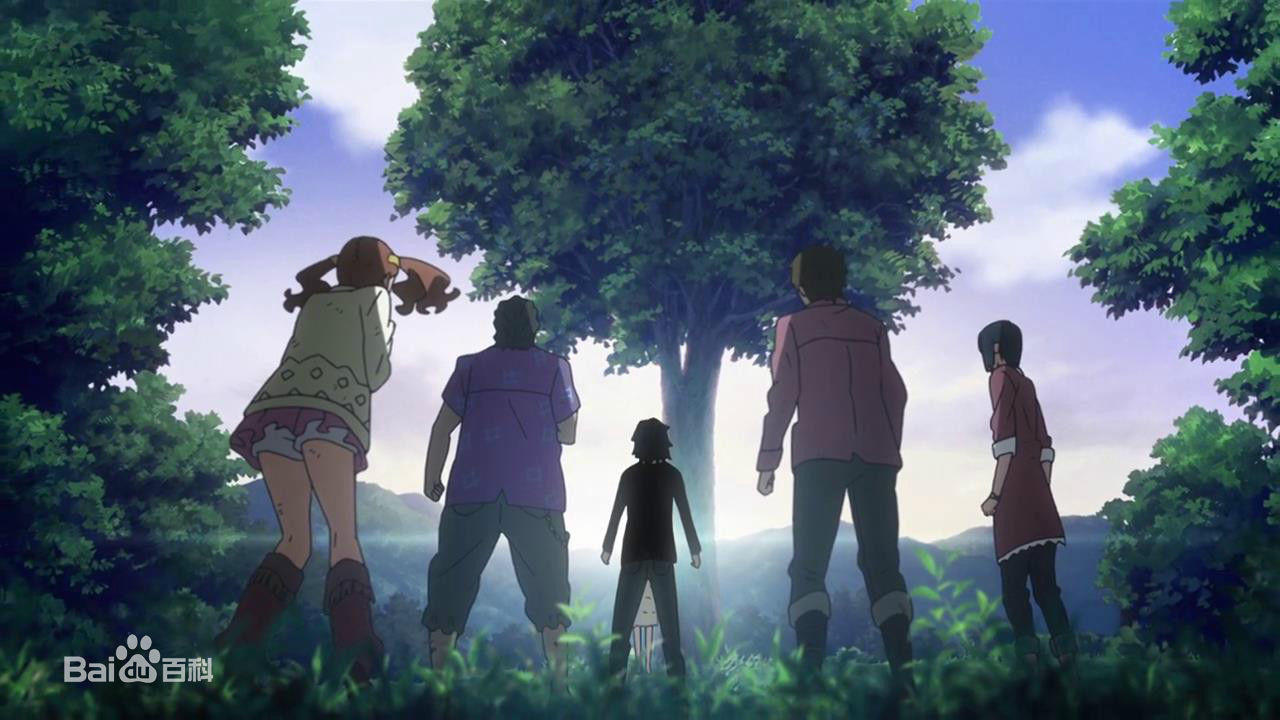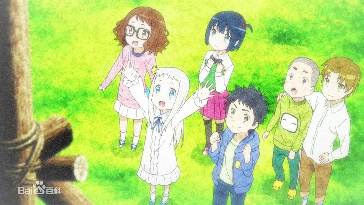 很多人從這部片子看到逝去的青春,比如小時候的秘密基地,當年的好朋友之類的,這確實是都有的,以前聽人説,重要的人逝去後,會常常覺得那人還活着,覺得他並沒有離開,也會容易把他的逝去歸咎到自己身上,在巨大的打擊面前,人的第一想法是否認這個傷痛,然後又因為人是一種沒有理由就沒有辦法釋懷的生物,所以常常會把那個傷痛歸咎於自己,從這點來看,如果兒時真的有那樣一個好友離開,那麼相信她只是如同捉迷藏一樣消失,才是最可能的想法,所以,仁太的長久自責,甚至雪集的變態行為,還有長長時間留在眾夥伴心裏的傷疤,包括眾人都覺得是自己的責任,這是再真實不過的存在,而在這種時候,一個儀式,比如完成她的心願,比如捉迷藏,比如煙花昇天,都能夠讓人給那種失去找到理由,或者説找到人生的刻度,並且重新出發。