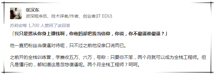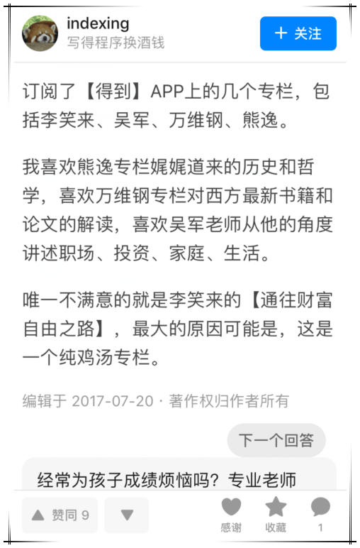 無獨有偶,這位“寫得程序換酒錢”的朋友在看了《通往財富自由之路》這個專欄之後,光靠雞湯就喝飽了。沒準李老師就是靠教導大家怎麼通往財富,來獲得財富的。你説説,同樣都是靠內容生存,為什麼別人就這麼厲害。看看人家看看我,看看隔壁大老李!