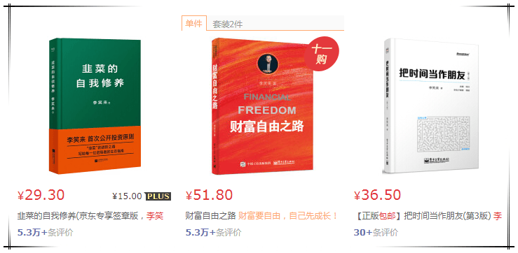 關於財富自由的內容,不僅僅展示在專欄內,最後還整理成書並且出版了,定價69。光在京東一個店鋪,就已有五萬多的銷量,火爆異常。