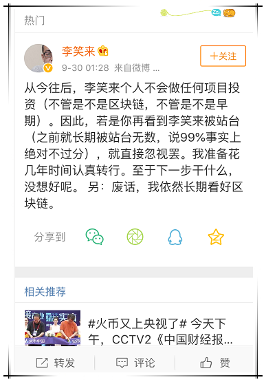 李笑來説自己“被站台”,仍然看好區塊鏈但不做項目投資_風聞