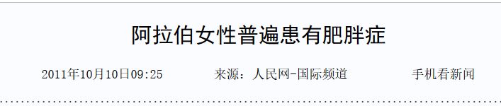 中東和北非,一直到近現代,依然存在從女孩小時候就“堆肥”的情況。因為阿拉伯國家的男人認為肥胖的女人更加健康,能更好地養育後代。**“男人們歌頌的不是大自然的美妙,而是豐滿女人的誘惑,因為他們能養育健康的孩子”,**女孩從小就被強制餵食牛奶和麥粉,Neya Mint Ally年幼的時候被強制餵了五年的甜食,後來身高一米五,體重超過了145斤,患了胃病。她回憶:“被填食很痛苦,但小時候想變胖,為了好看。”