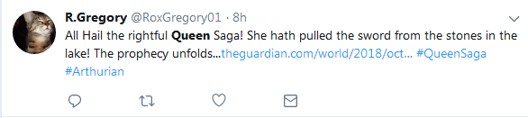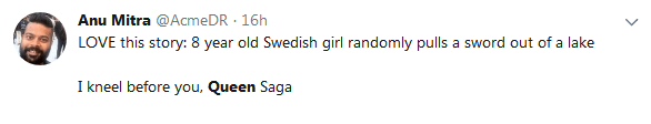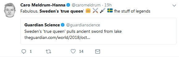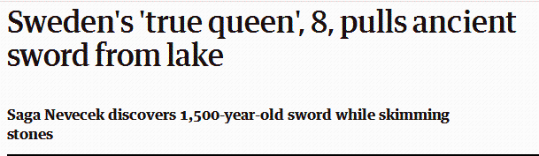 現在,這個小姑娘的傳奇故事已經在歐洲各地的社交媒體上火了,因為她和這把古劍的奇妙緣分與亞瑟王時期《石中之劍》和《湖上夫人》的傳説簡直是如出一轍。很多人甚至猜測Saga將會被當地官方機構加冕為“瑞典女王”。