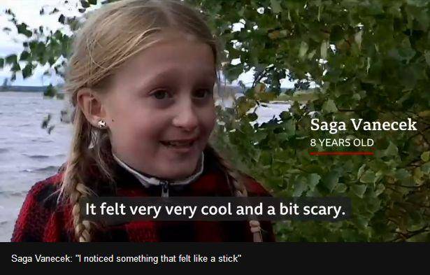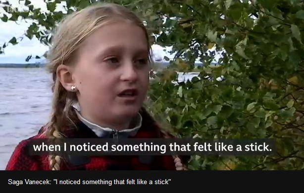 這個名叫Saga Vanecek的女孩當時正在和家人一起度假,在瑞典當地一個名叫Vidostern的湖裏撿到了這把劍。