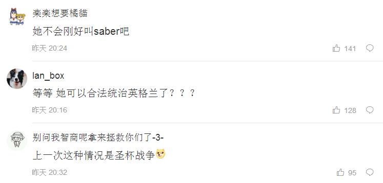 國內網友聽説後也表示神奇:“真龍天女迴歸,再不加冕就晚了!”“Saber,是你嗎?”