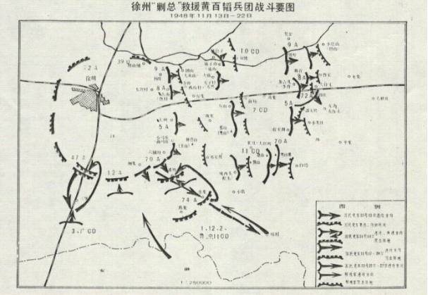 黃百韜陷入重圍後,蔣介石高度緊張,因為一旦黃百韜兵團被華野吃掉後,在江淮一帶的國民黨軍乃至整個國內戰場將陷入極度不利的態勢。為了挽回頹勢,解救出黃百韜兵團,蔣介石派出心腹愛將杜聿明指揮實力強大的邱清泉兵團、李彌兵團兵力從徐州前往解圍。