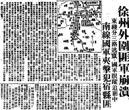 隨後,在徐州“剿總”司令劉峙給蔣介石的電報中,內容則更“昇華”和“充實”:“國軍是在極不利的態勢下,遵總統鈞旨,東援碾莊,血戰潘塘鎮。該役一舉打垮共軍5個主力縱隊的猖狂進攻,致使徐東共軍全線崩潰……累計已消滅劉、陳匪部10萬以上,共軍陣地俯屍遍野,血流成河。”為了營造氛圍,劉峙還勒令徐蚌等大城市各單位張燈結綵、鳴放鞭炮、張貼勝利傳單,徵集前線“慰勞品”。