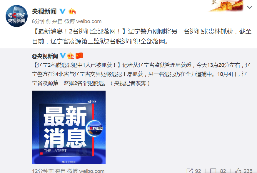 抓到了!遼寧省凌源第三監獄2名逃犯全部落網_風聞