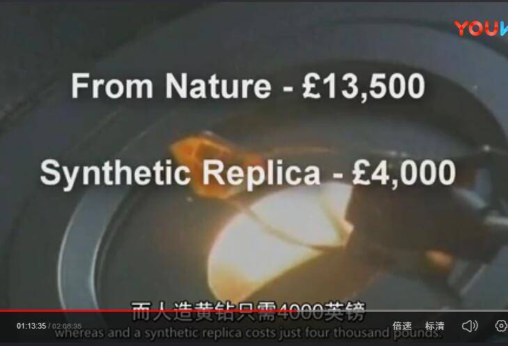 最後還講了人造黃鑽只要4000英鎊,而天然的要13500英鎊,天然鑽石價格高只是一種炒作,其實早就可以合成了: