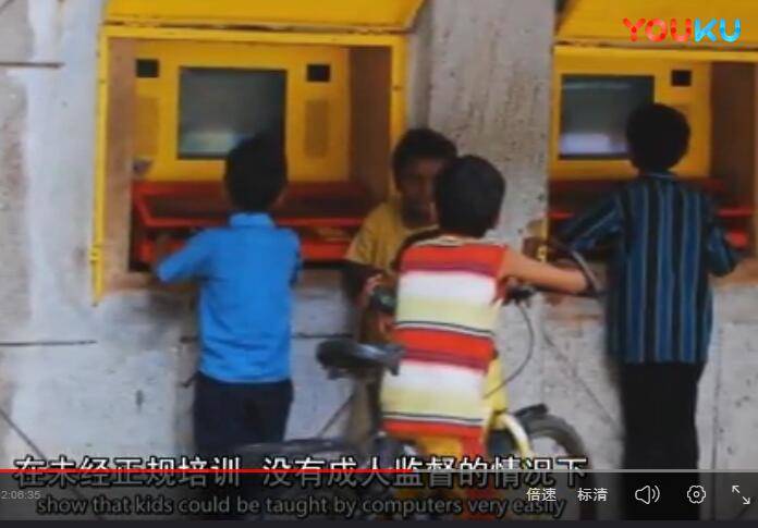 他提出一個微創教學法的觀點,就是教育是一種自組織的行為,我理解是應該讓學生有“我要學”的想法。他做了一些英文的教學程序,存入電腦中,然後再把這些電腦放到一個印度貧困地區的村莊的牆洞裏,讓當地不懂英語且沒上學的孩子隨便折騰: