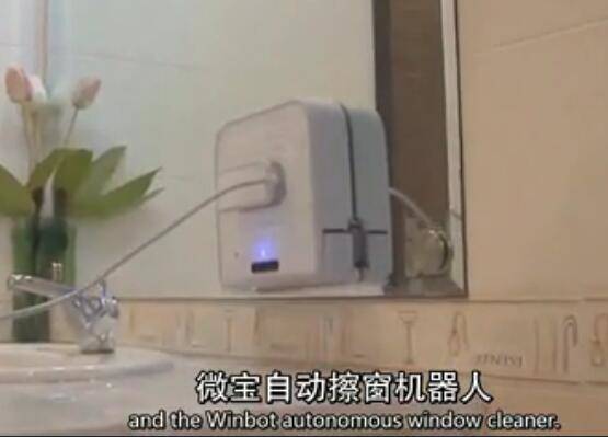 還有擦窗和掃地機器人,掃地機太常見了就不截圖了,擦窗機有點稀奇,沒看懂是如何固定到鏡子上的,鏡子後面有磁鐵嗎?