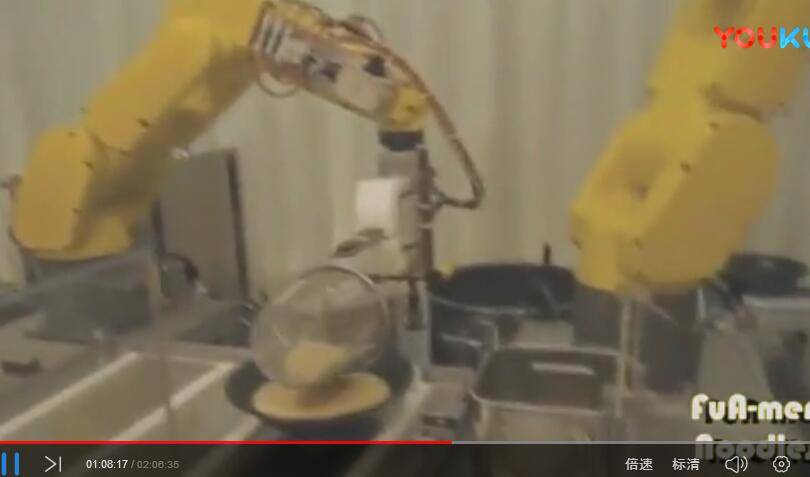 片中繼續展示的是中餐的分段投料炒菜機(炒一會再用機械爪投料),這個其實要幾萬到十幾萬,普通小餐館老闆可能寧願自己炒菜也不會去買的~~