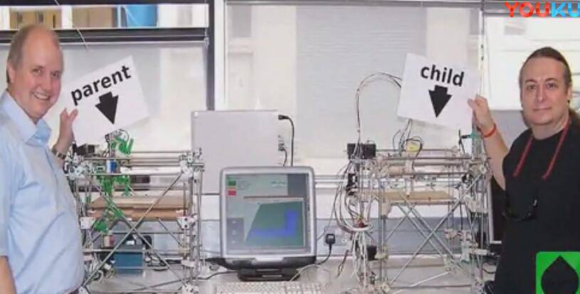 接下來片子裏介紹了一種叫reprap的3D打印機,結構非常簡單而且是開源的,大部分零件可以通過自我3D打印生產,所以以後3D打印機會更廉價,塑料杯子自己打印的時代指日可待。
