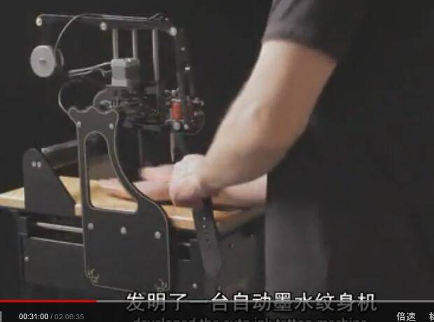 片中説理髮難以自動化(其實我見過可以自動剃光頭的機械手),但紋身行業是存在自動紋身機的了: