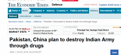 這一新版本來自印度《經濟時報》6日的一篇報道。印度旁遮普省首席部長辛格(Amarinder Singh)當天表示,巴基斯坦和中國有一項長期戰略,要通過在該國走私大量毒品來摧毀印度軍隊。