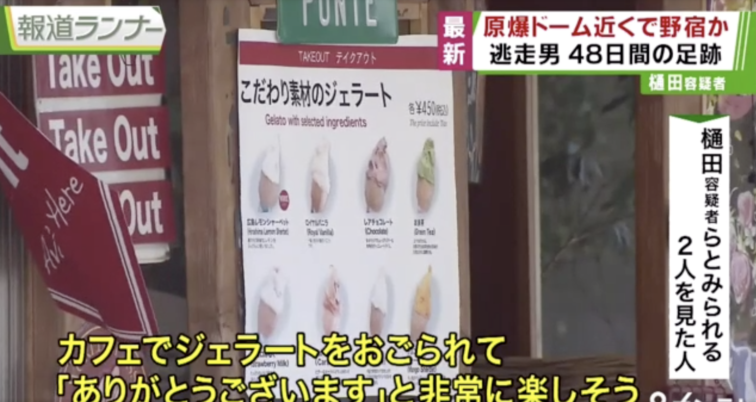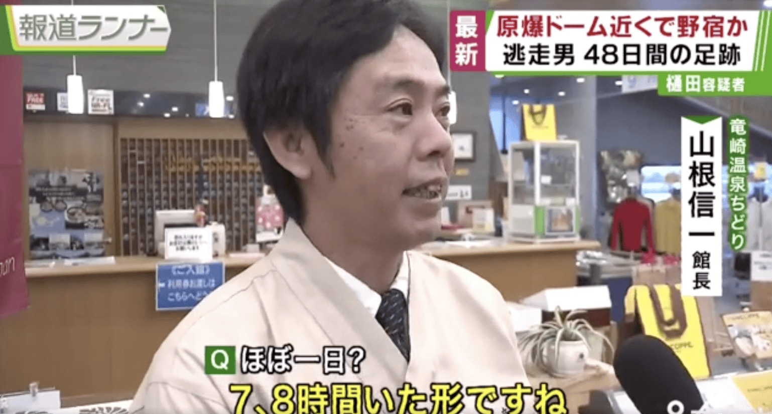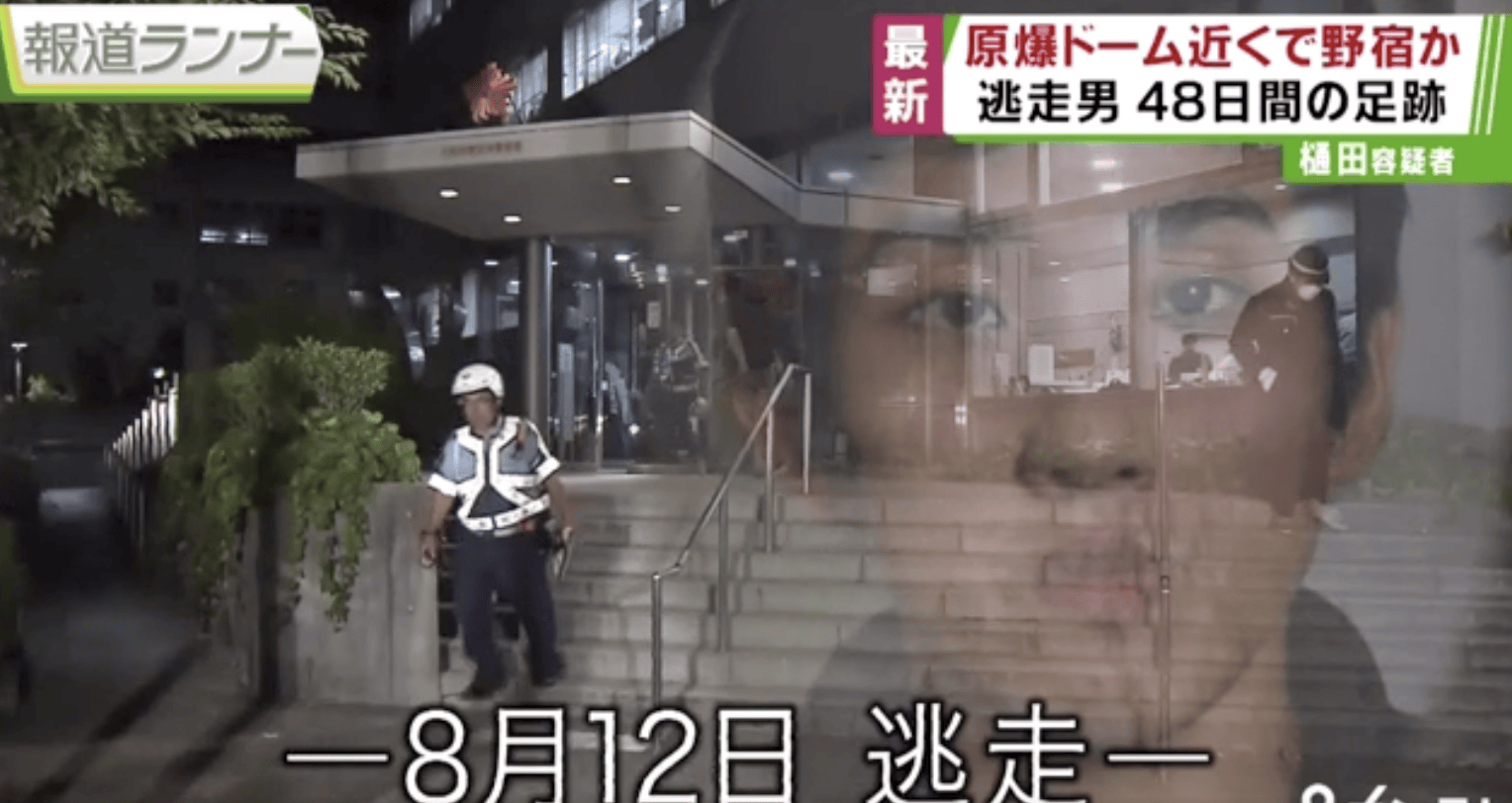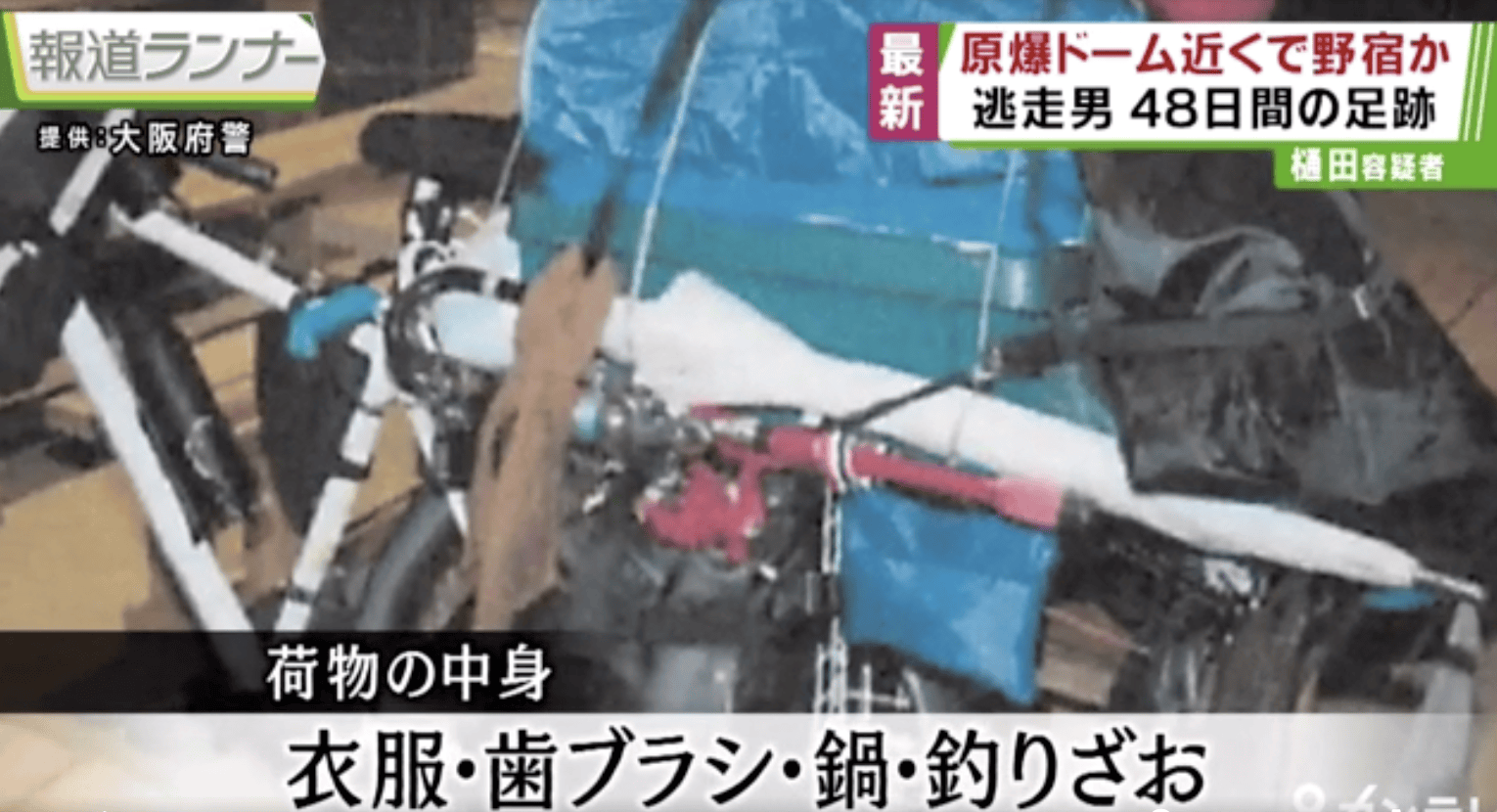 在便利店將便當藏進大衣裏,這個畫面被便利店的防盜監控錄像拍下後,今年30歲的樋田淳也作為嫌疑犯被日本大阪警方逮捕。8月12日晚,在大阪市富田林警察署的會面室等待警方做口錄的他,在無人看管時打破了玻璃奪窗而逃,之後偽裝成環遊日本一週的騎行愛好者,在9月29日被抓到之前逃亡了足足49天,行程超過了1000公里。更令人瞠目結舌的是,逃亡期間的樋田還走訪了各大著名風景區拍照留念,到處蹭吃蹭喝還泡了温泉,一副十分享受的樣子。