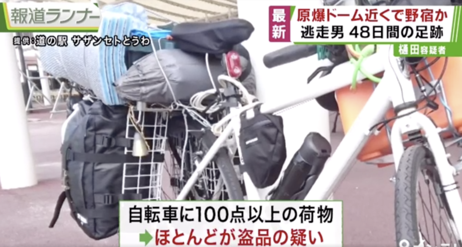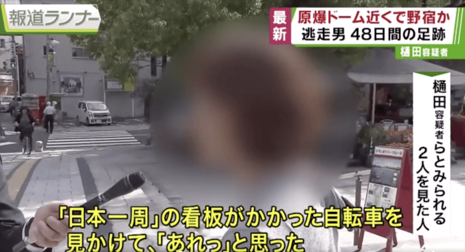 原子彈遺蹟附近見過嫌犯的目擊者:看到(樋田)掛着“(環遊)日本一週”的牌子的自行車,覺得“好奇怪啊”