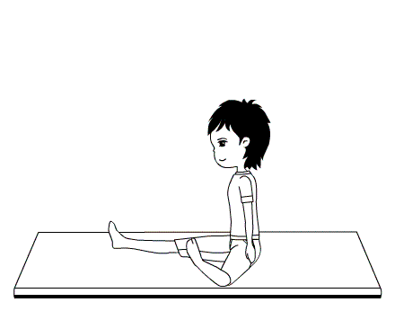取坐位,右腿伸直,左腿彎曲平放在地面上,左腳心貼在右大腿的內側。然後,身體向彎曲的左腿方向扭轉,右手去抓右腳尖,左手臂向天空的方向伸展,儘量使身體保持在一個平面內。