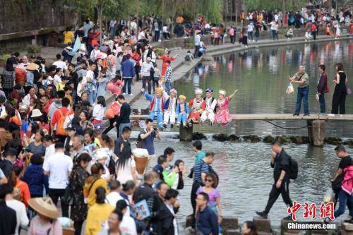 2018年國慶期間,大量遊客在景區參觀。中新社記者 泱波 攝