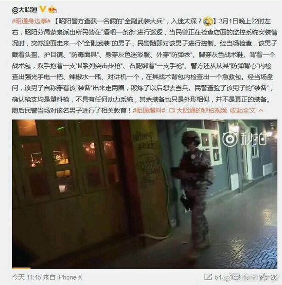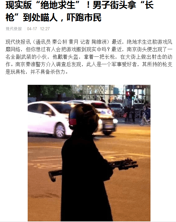 但是槍型物確實有其特殊性,比如外形有震懾力,而有些人僅僅拿着有點仿真度的玩具槍就飄飄然的表現起來了,也確實是問題…
