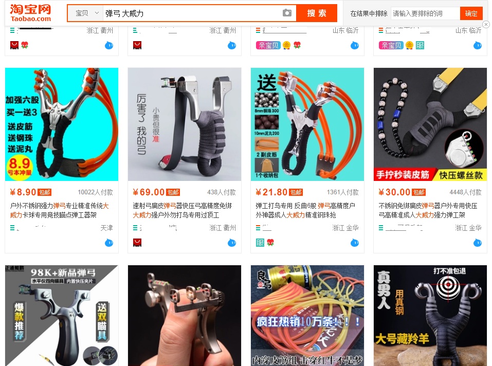 比如彈弓類似乎就沒有限制,明明威力很大,看到圖上那個射魚鏢了嗎,十釐米多金屬帶倒刺啊..