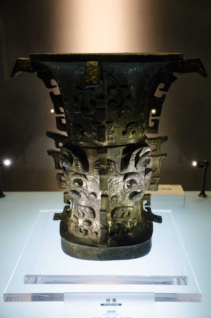 現藏於中國寶雞青銅器博物院的何尊,是中國首批禁止出國(境)展覽文物,也是國家一級文物。而其如此珍貴,緣於鑄刻在尊內底部的122字銘文,“宅茲中國”一句是“中國”一詞最早的文字記載。