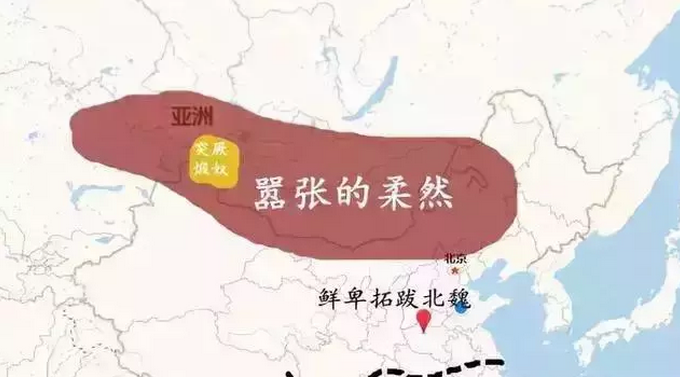鮮卑拓跋部創立了北魏,這就是南北朝中長江以北的王朝,北魏一直跟柔然死磕。那也是沒辦法的事情,柔然原本隸屬於鮮卑拓跋部,是拓跋的奴隸,成天干苦力,後來拓跋南遷,小柔然也就闖蕩成了大柔然,並跟原來的主人掐起了架。