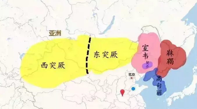 原本突厥可以很牛的。可惜南面的隋朝滅亡了以後,迎來的是唐朝。再想南下撈一把,是不可能了。反而被唐朝一窩端,被一窩端的,還有高句麗等等。