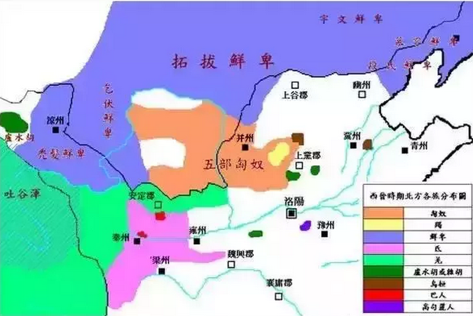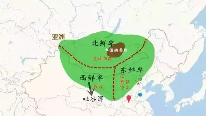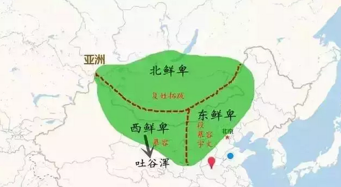 從晉朝到後來的五胡亂華時期,鮮卑分成了東、北、西三大部落。