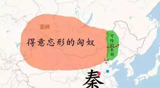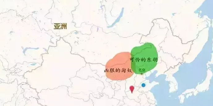 從商周時代開始,匈奴和東胡就存在了,他們的位置大概是這樣的: