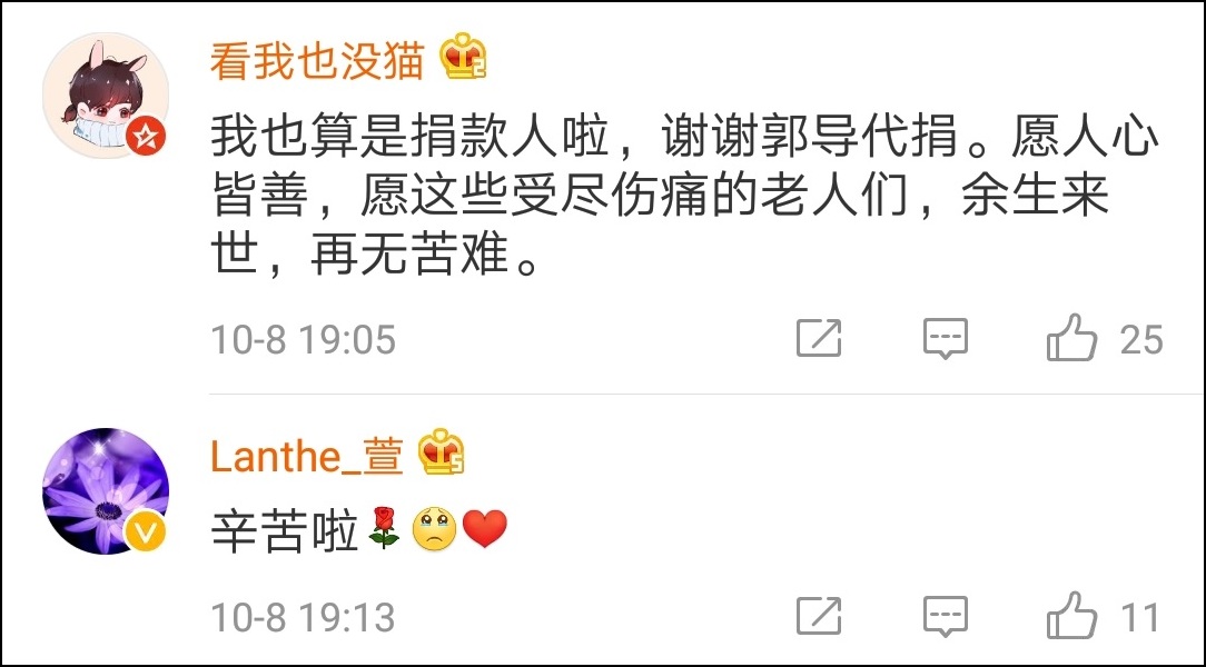 郭柯、張歆藝等人在稍晚時分也轉發了這則微博,並感謝大家的捐助和愛心。