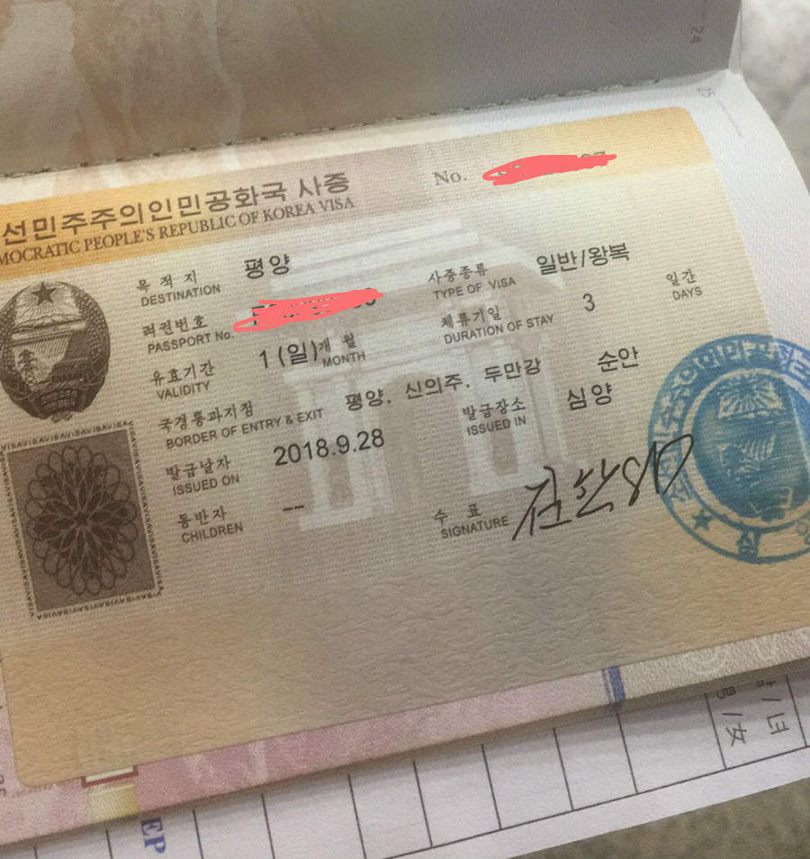 此外,搭乘航空還有一個隱藏福利,就是可以選擇辦理朝鮮紙籤。一般情況下,都是朝鮮提供單獨的簽證紙,用過之後就會收回,護照上不會留下痕跡。據説在護照上留下朝鮮簽證會影響去美國,但從一些驢友的友好分享看,美國人只是在意,但不會為難,如果你的護照像萬國旗一樣,人家也不會懷疑你和朝鮮有什麼特殊關係。
