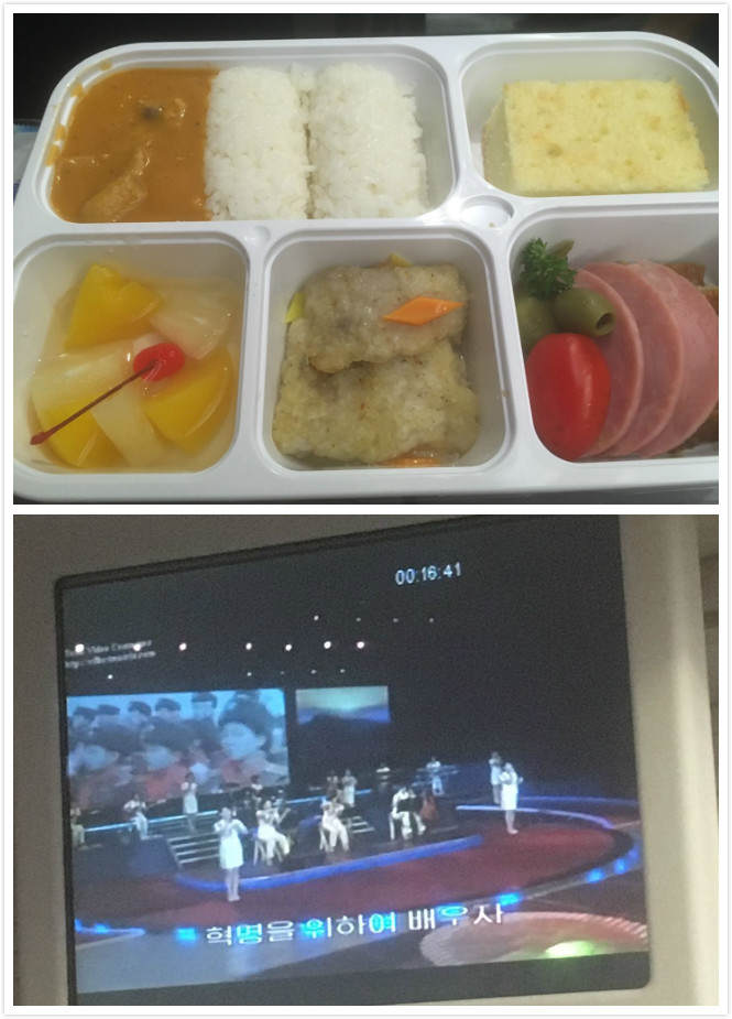 空姐前面這兩個朝鮮大叔很有意思,飛機排隊起飛時,關了一段時間空調,飛機內悶熱難耐,看到律師大人手裏有可樂,比劃着要喝一點。我示意他去找個杯子,黃衣服大叔翻了翻行李放棄了。我以為這事就過了,但飛機起飛,供應餐食後,他又一臉興奮地拿着喝過飲料後的空杯子給我看,最後終於從我這裏喝到一杯無糖的可樂……