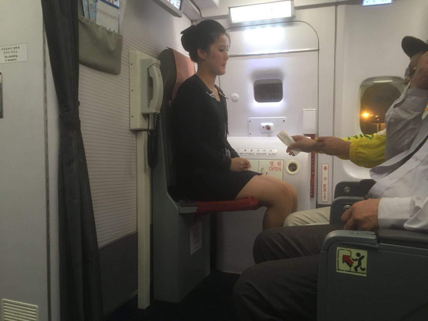但高麗航空也有自己的賣點,就是空姐!在朝鮮沾上涉外的項目,其工作人員必定是精挑細選而來。總體上,高麗航空的空姐個個膚白貌美,高個長腿。在令人不安的旅途中,也算帶來了一點安慰。