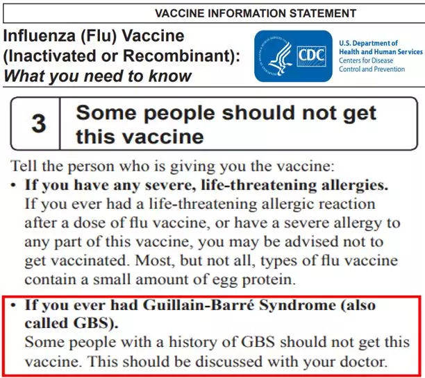 前面出示的2015版藥典流感疫苗説明書裏,GBS病史是明確的禁忌症。美國疾控中心目前仍將前次接種流感疫苗後6周內出現過GBS作為禁忌症。