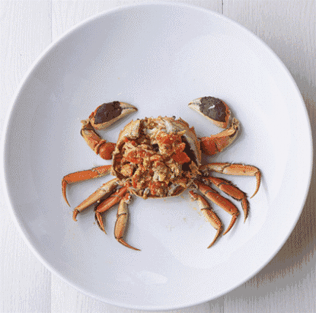 建議吃螃蟹時先吃蟹鉗、蟹爪,這個時候螃蟹蓋並沒有掀開,熱氣並不會跑掉,之後再掀起蟹蓋,食用蟹黃和蟹膏,順着螃蟹的身體結構依次食用蟹肉,避免出現不必要的浪費。