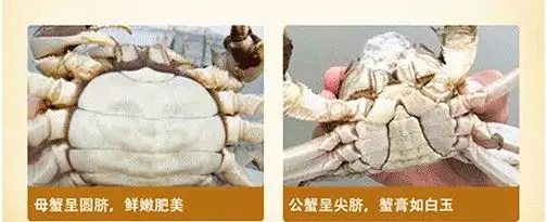 “九月圓臍十月尖”,不同季節食用不同的螃蟹,農曆九月雌蟹(母蟹)殼凸黃滿,肉質細膩;十月雄蟹膏脂厚膩,肉多且味鮮。如何挑選鑑別呢?