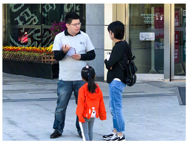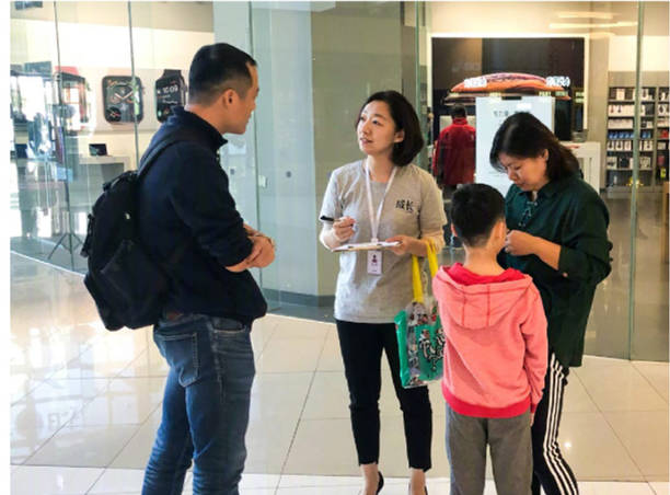 “您好,我是滴滴員工陳汀,滴滴正在進行安全整改,希望邀請您參與用户意見徵集。”陳汀身看文化衫、佩戴工牌,拿看調查問卷與用户深入交流,並認真記錄下了每一條意見和建議。
