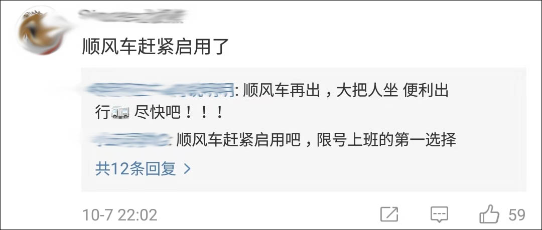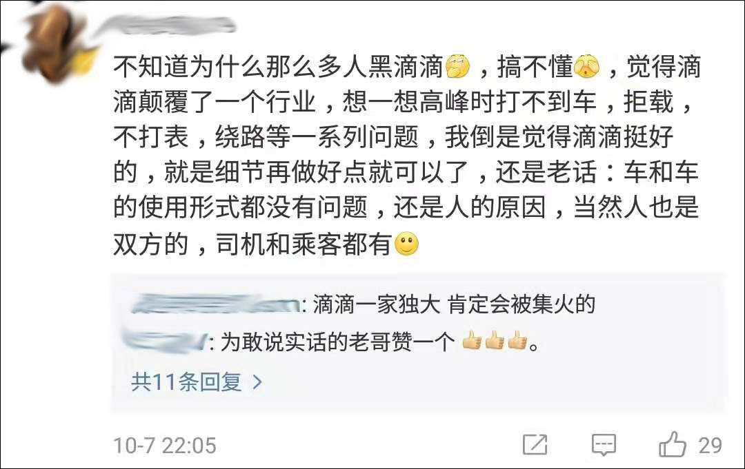截至現在,滴滴出行這條微博下面只有不到200條評論,在這不到200條評論中,熱度排在最前面的三條分別在説“順風車趕緊起用吧”“為什麼這麼多人黑滴滴,滴滴也挺好的”“順風車什麼時候上線啊”。