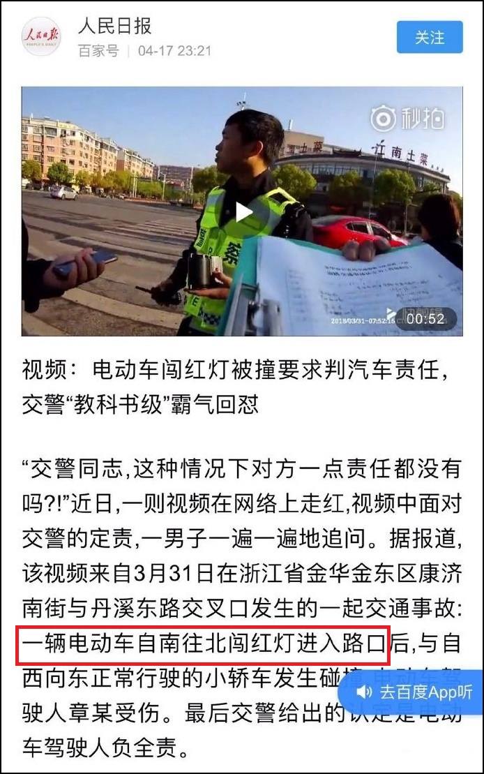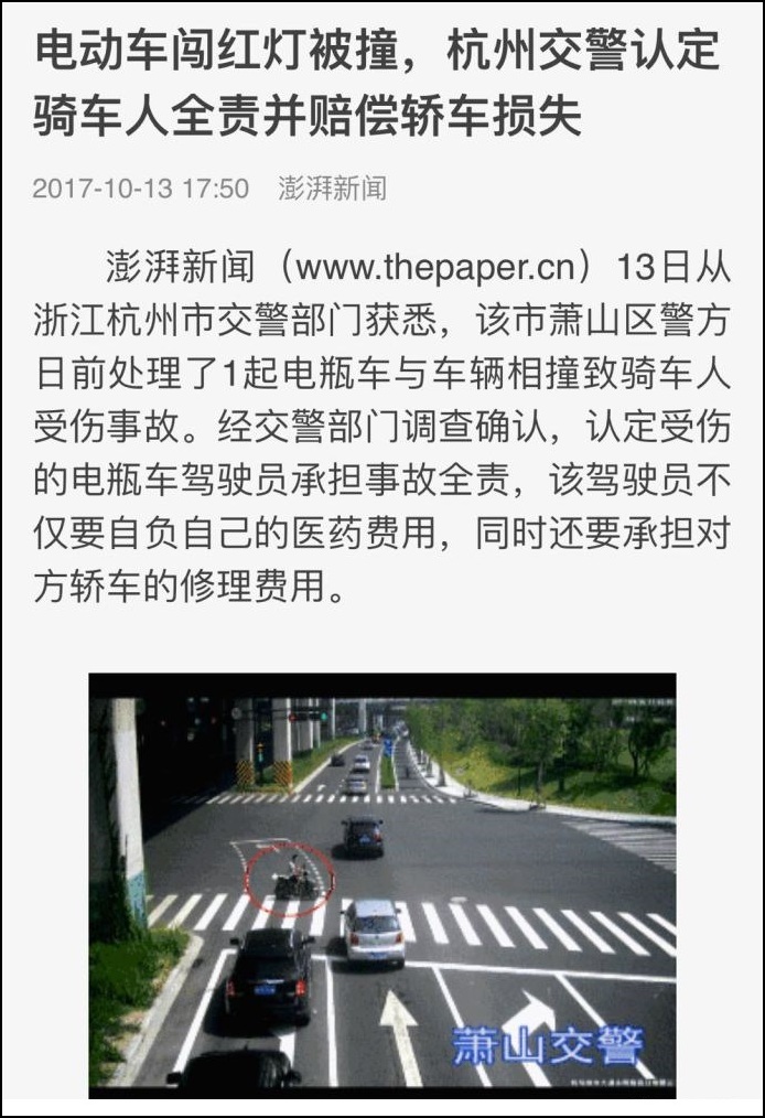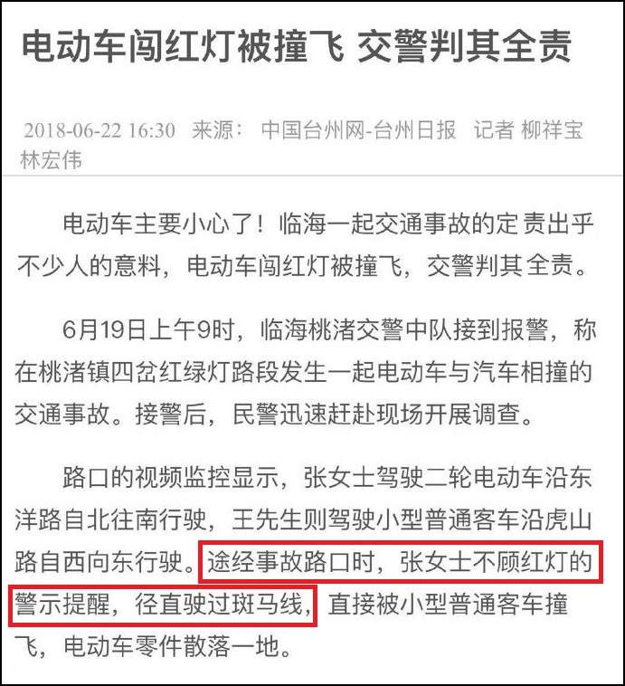而據觀察者網查詢,在以往多數電動車闖紅燈違法駕駛導致事故的案例中,多地交警都是判電動車主負全部責任或主要責任的。
