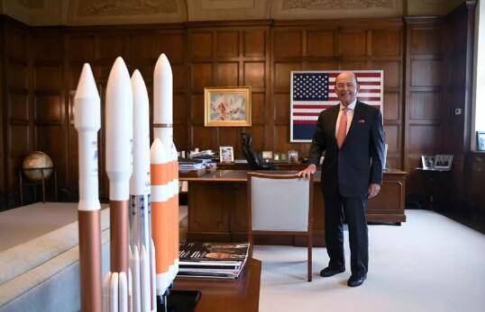美國商務部長羅斯5日在部長辦公室火箭模型旁受訪。來源:路透社
