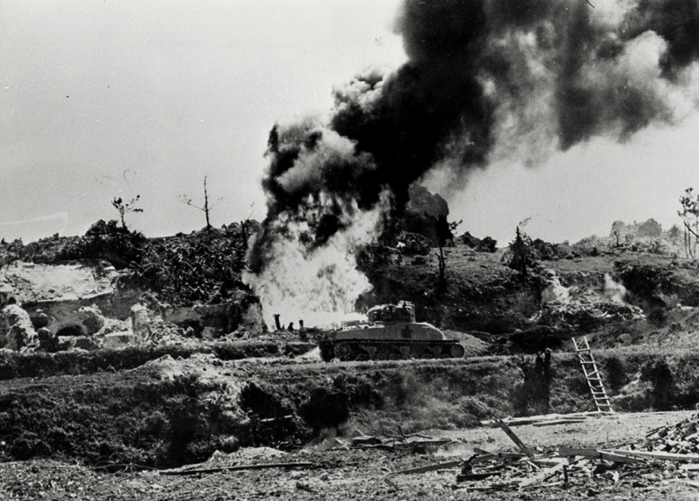 沖繩戰役中,美軍大量使用火焰噴射器無差別攻擊(圖片來源:每日新聞)