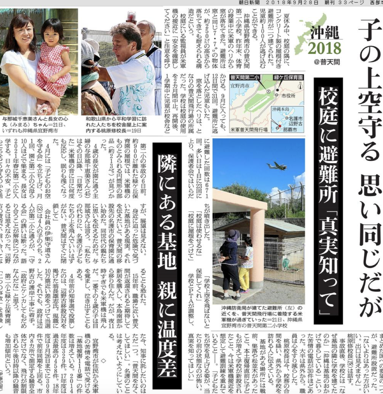 沖繩國際大學美軍直升機墜落事件曾經是沖繩地區無法抹去的傷痛之一,但是有媒體曾對該大學的大學生進行採訪,至少有三分之一的人對該事件並不知曉,這讓許多衝繩本地人越來越擔憂。因為對於新生代的沖繩人來説,美軍基地已經逐漸成為了出生以來理所當然的風景。