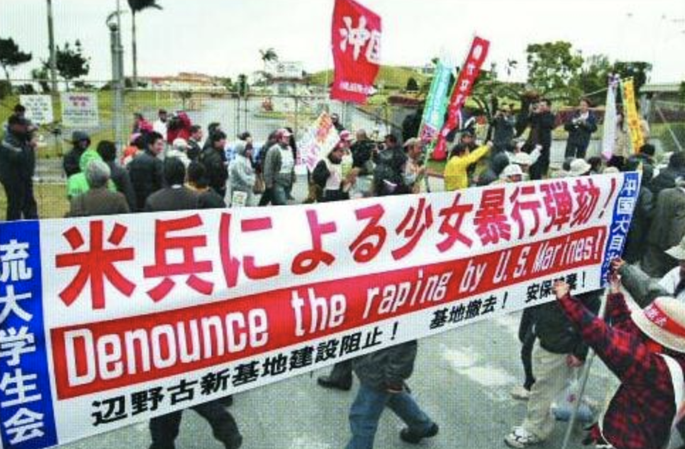 最令沖繩當地人感到憤怒的其實是事故和犯罪問題。在美軍基地建起不久的1950年代,沖繩當地發生過百起強姦事件,當地人憤怒抗議得到的是日本政府的警察和美軍的聯合鎮壓。雖然時過境遷並且隨着《舊金山條約》的簽訂,沖繩實現“本土復歸”,重新脱離美軍控制由日本政府接管,日本逐漸正常化並開始重視沖繩地區人們的訴求。但是,美軍的犯罪並沒有減少,而對美軍的懲罰以及事故的處理更是成為當地棘手的問題。這些問題集中表現為1995年美軍強姦少女案和2004年沖繩國際大學美軍直升機墜落事件。