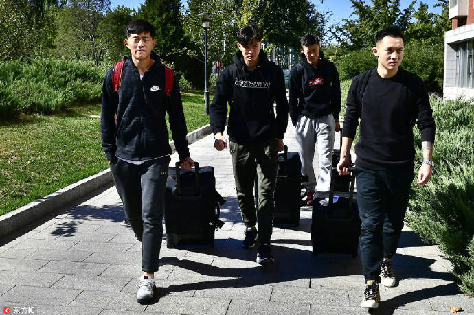 國足訓練營球員在北京體育大學國家隊訓練基地集中